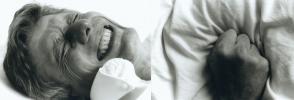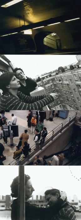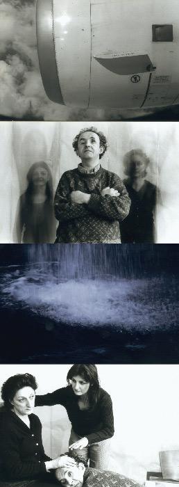 “With Loup, the artificial turns out to be an acknowledged figure of style. When placed in the service of visual simulations modeled on classical iconography (playing with the notion of pose, for example) or the photo-roman picture story, it can express various problematics differently from the illusionism of "Les Oignons" (Mireille Loup, 1993). Such is the case with Hyper (1998), a veritable collection of intimate tragedies and human figures in crisis. Once again taking the form of a photographic frieze, Hyper offers a catalogue of images that illustrate fairly contemporary forms of excess--combat, depression, disgust, ecstasy, talk shows. Views that are combined but each time autonomous--a woman crying, a deserted urban landscape, someone vomiting into the toilet or urgently popping a pill. Certain screened images seem to come directly from the TV. The hysteria arising from this vision is tempered by the rustling sound of countryside and wind, a highly contradictory backdrop of bucolic atmosphere. An homage to the injured body of this end of the millennium and its fantasies of harmony.”