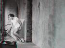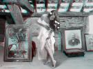 In 53.77 one can discern faint reminders of the white images of the series Mem, realised in 2009, which gave birth to the series The Others / Les Autres (2011), where three adolescents with expressionless faces, wreathed in spectral light, wandered inside timeless places, a reference to the film by Alejandro Amenábar. Neither a series nor a sequence, the photos shown in 55.77 display new focuses. If the existing narrative throws confusion upon the identity of the narrator, it is due to spatial and temporal cuts that juxtapose several separate and yet interconnected scenes through recurring architectural clues or perspectives seen from various angles. Within these ancient, antique decors, as they shed their successive skins - marble, stone, plaster, wood, brick - a young woman emerges successively as a vestal, as Venus or as a contemporary nymph mimicking in an overstated manner the poses of Hellenistic sculptures and of Florentine Renaissance painters. These remanences announce the flight of memory, the escape of the mind that wanders inside these spaces while following the thread of an ars memoriae. To each place, a courtyard surrounded by arcades, a corridor, attics filled with rubbish and treasures, the edge of a fountain, corresponds an evocation that, in the suspended, frozen gesture, in the petrified walk, liquefies oblivion, dilutes it to the surface of the picture, and deposits on the ground the stasis of rainwater. The rituals associated with offerings, palms open, hands and cloth outstretched, precede each stage with an emotional memory linked to the history of the places, charged with collective stories: in this cloister, which could be that of a Lisbon museum dedicated to azulejos, the background walls, adorned with tiles, come to life describing mythological, biblical or gallant scenes where the eternal poses that adapt to the artistic styles of intertwined eras are replayed endlessly.