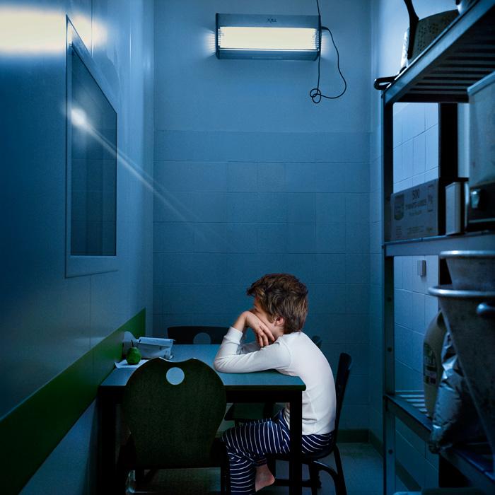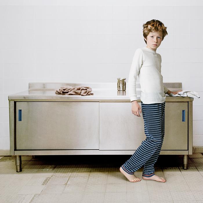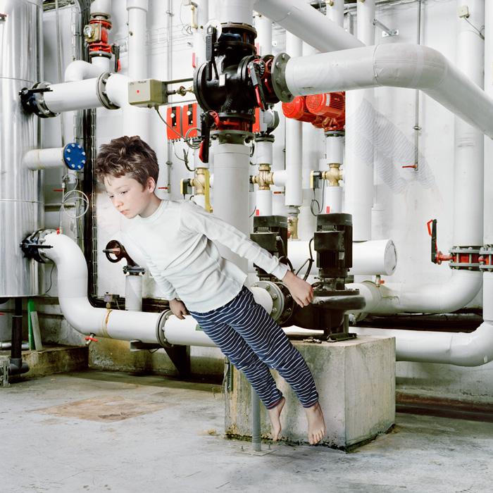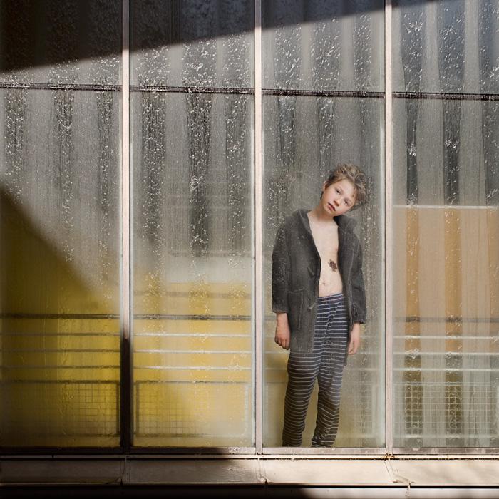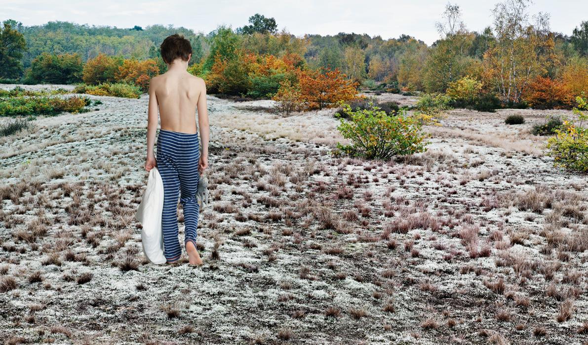 Inspired by remarkable works dealing with isolation such as The Silence by Ingmar Bergman (film, 1963), the literary trilogy His Dark Materials by Philip Pullman and the short story by Jules Supervielle The child of the High Seas, Mireille Loup had already given us images of the wandering of childhood. One remembers this little girl inside magnified landscapes from her series Esquives, created thirteen years ago (2003-2005), of which two photographs have been acquired by the Fond National d’Art Contemporain (French Contemporary Art Fund). In Esquives, accompanied by a novel of the same name, she told us about the isolation of her own childhood, revisited and sublimated. In Beneath / Beyond (2), she invites us into the "polytropic" interiority of her son, who asked her to appear in these images, and conveys again the feeling of being estranged from the world, as if history was endlessly replayed.