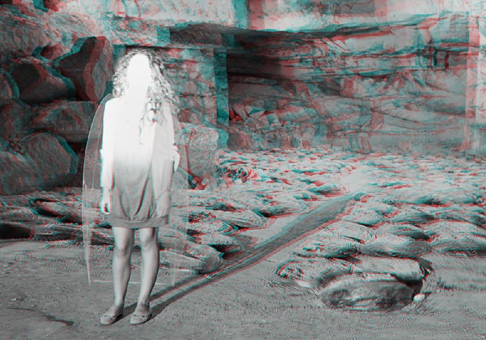Using the magic of virtual reality, the wonder of 3D images, without trying to make us accept the unbelievable or the supernatural, Mireille Loup invites us to think about this strange memory of places.