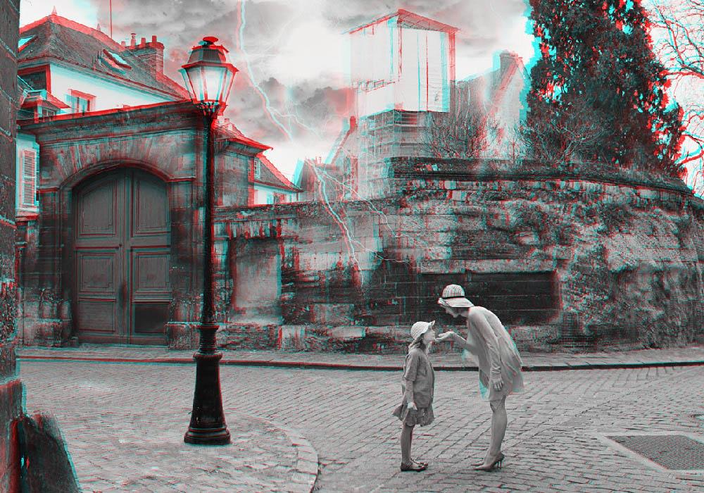 Mireille Loup was invited by the Conseil Général de l’Oise to reappropriate the stereoscopic pictures of Charles Commessy (1856-1941) that are kept in the departmental archives of the Oise County. She revisits the art of this photographer and this technology, with new resources. By voluntarily taking up this archaic, old, somewhat old fashioned anaglyph process, Mireille attemps to make us aware that a perfect double of the world can never be achieved.