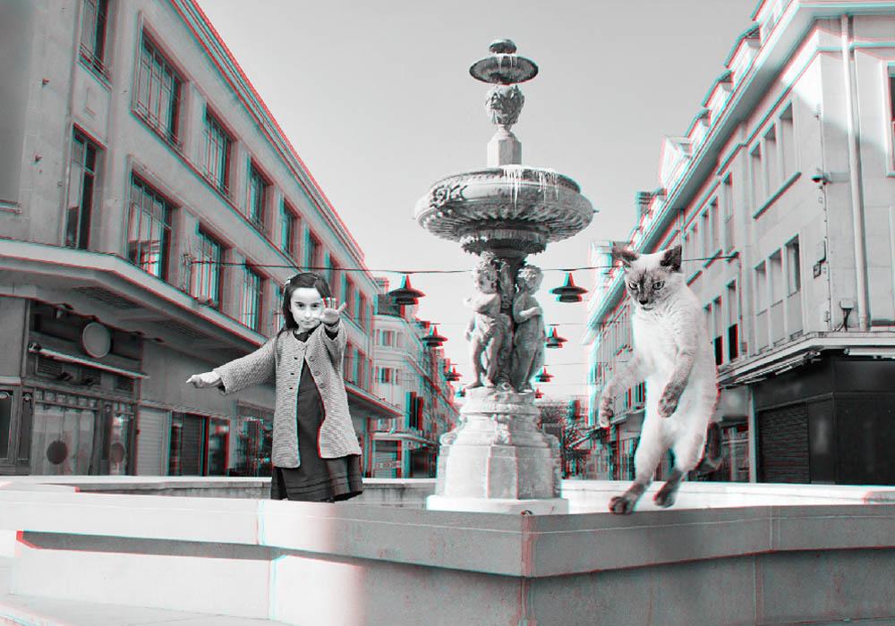 Photography has also embodied this utopia, this almost magical aspect of images, especially with its almost supernatural apparition in the developer bath. In her approach to anaglyph process, Mireille Loup makes us understand that, just as our ancestors, we remain fascinated by the magic of the image, this sleight of hand that makes a representation, suddenly, looks like reality. She creates the almost childish wonder at the apparition of perspective, a perspective that was not there, without red-cyan glasses, a moment earlier. She gives us, for a moment, the illusion of a possible, almost magical, transformation of the elements. Mireille also takes us into the world of childhood, of books where small cardboard theaters unfold and open.