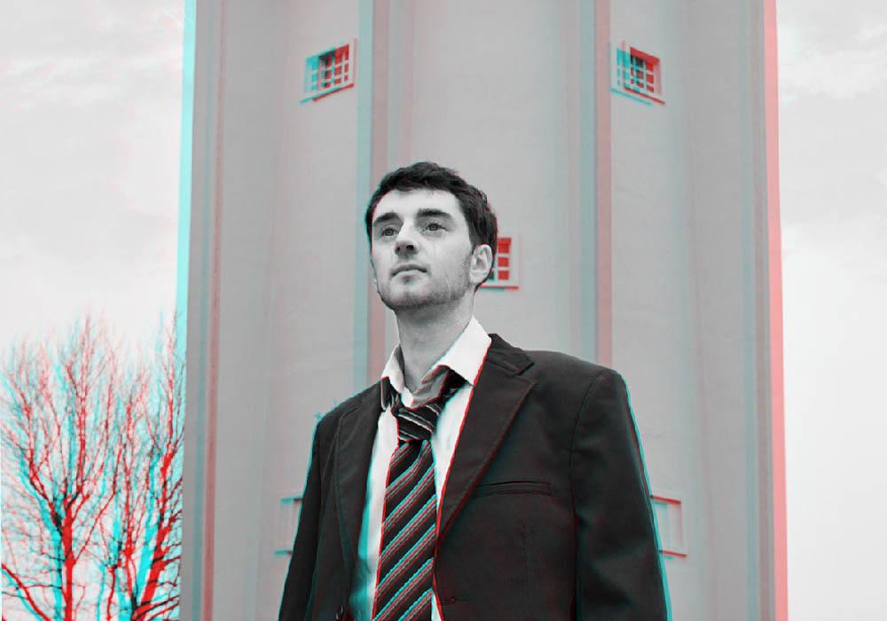 (Homme en costume pleurant devant le château d’eau du quartier Notre-Dame-du-Thil, Beauvais) / (Man in suit, weeping in front of water tower of the Notre-Dame-du-Thil district, Beauvais).