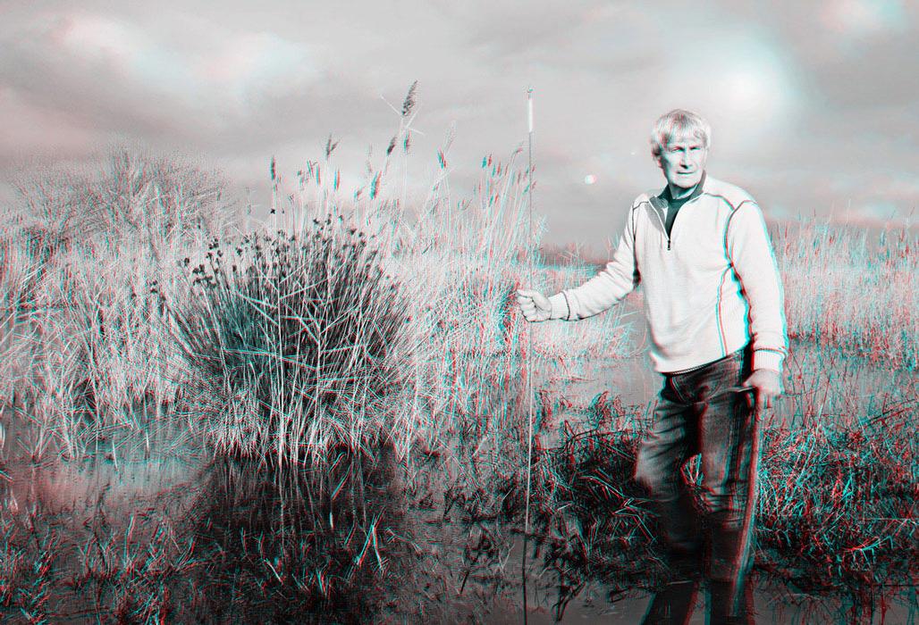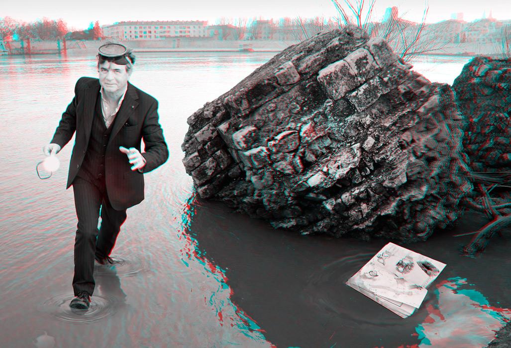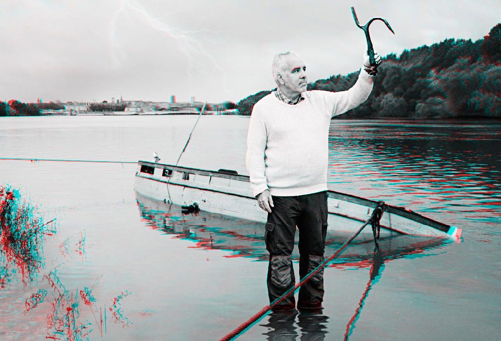 Facing Mireille Loup’s camera, Philippe Rigaud, free scholar, medievalist researcher, represents Le Fou du Rhône No. 1. Mireille Loup is assembling eight images to create a 3D vision of this dream. Under a stormy sky the city of Arles can be seen in the background, Philippe, an old shipping hook in his hand, stands in front of the Césaire, the sailing boat that, after years of restoration, sank in the Rhône in July 2015. Les Fous du Rhône, an idea of Estelle Rouquette, curator of the Musée de la Camargue, is a photographic commission that will be realized between 2015 and 2016, for the Museum permanent collections.