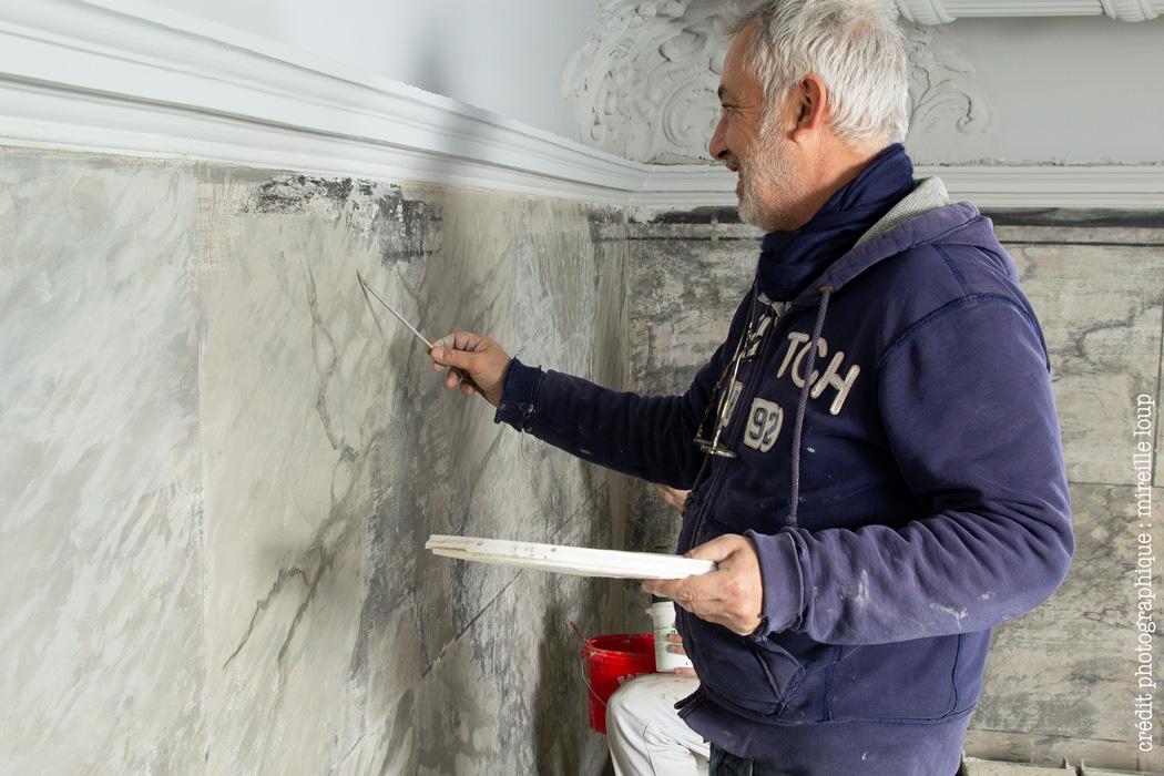 Photographies de chantier pour la formidable équipe de l'Atelier des Arènes, peintres en décors pour le patrimoine historique.