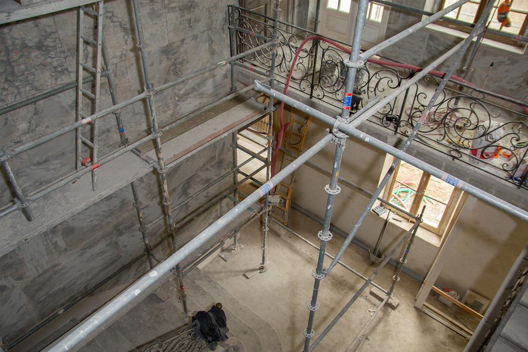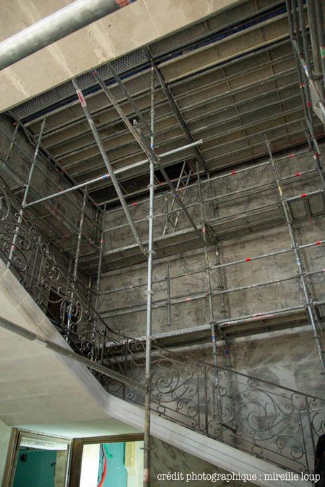 Ici la restauration picturale de la cage d'escalier de l'Hôtel de Boudon à Nîmes.